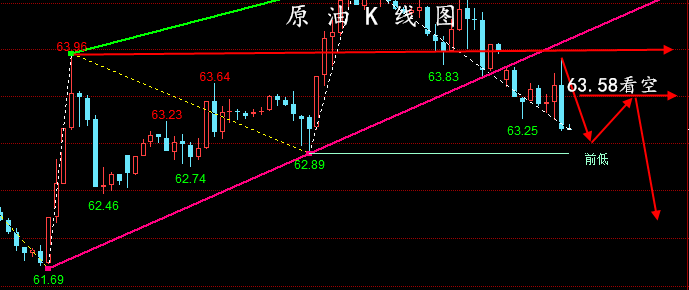 工夫面:工夫面上看,昨日邦际油价振撼交投中迎来压制回落调解,欧美盘时段小幅反抽冲高,承压64.6闭口迎来压制回落振撼走跌,凌晨收盘压制于64闭口下方报收反包中阴。今日油价短线闭口支持,若跌破不妨进一步下探至62.5美元区域!晚间重心体贴上方64.5-64.0阻力,下方62.2-61.6支持!个别估计:高空为主,低众为辅;WTI分水岭:63.0美元/桶!