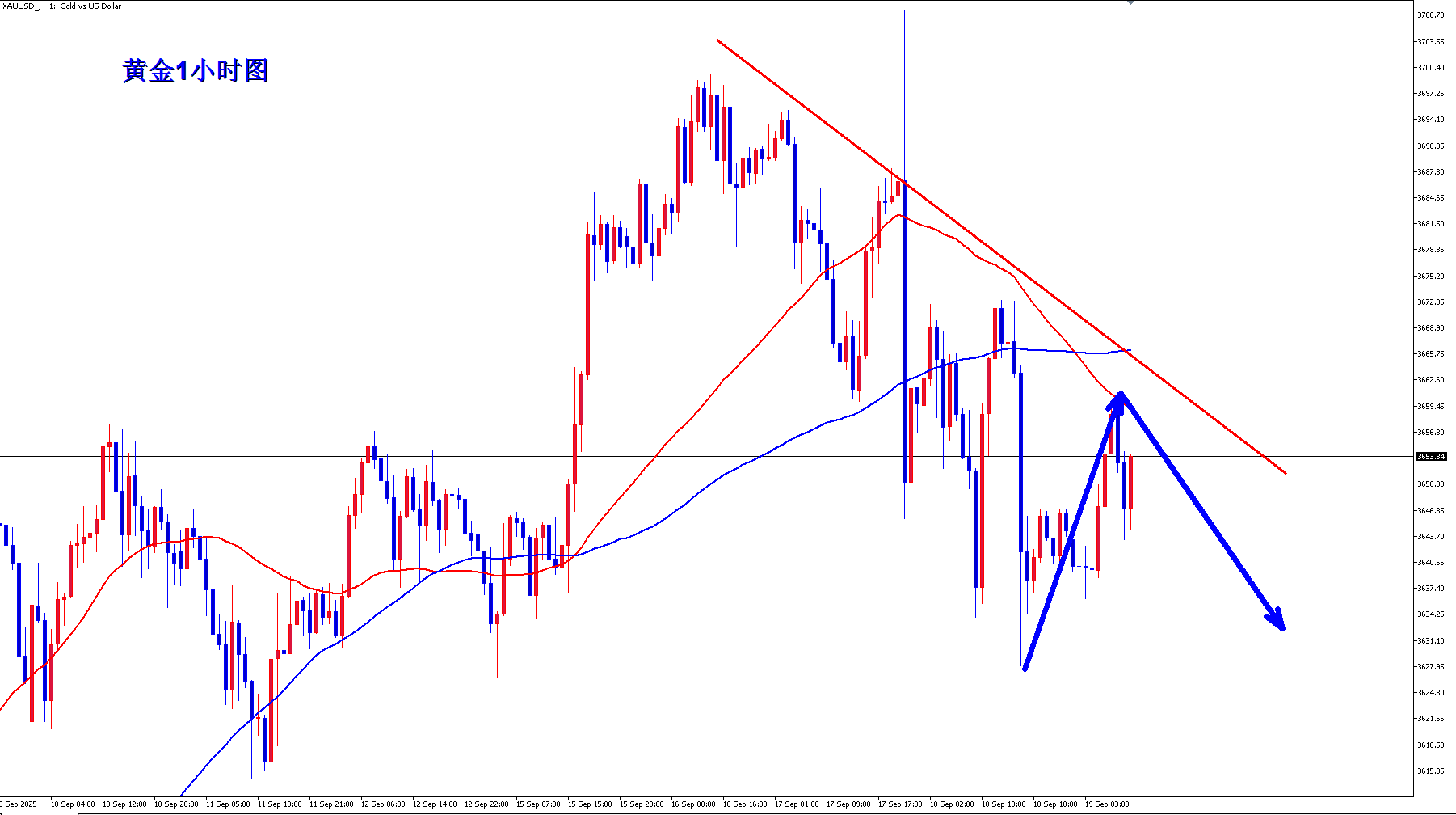 黄金1小时均线不停死叉向下的空头陈设,黄金空头再有向下的力度,黄金1小时1小时早盘冲高至3660上方之后就承压回落,午后黄金承压仍然不停空。