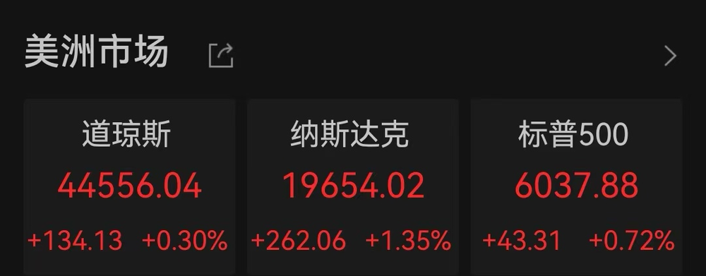 美股大型科技股无数上涨,谷歌-A、特斯拉、苹果涨超2%,亚马逊、英伟达涨超1%,Meta涨近1%,微软涨0.35%。