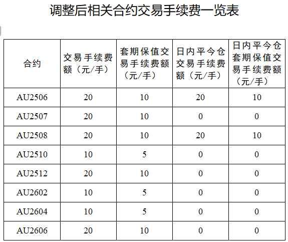 黄金期货除AU2506合约以外,6月、12月合约的往还手续费安排为20元/手,日内平今仓往还免收往还手续费连结稳定。