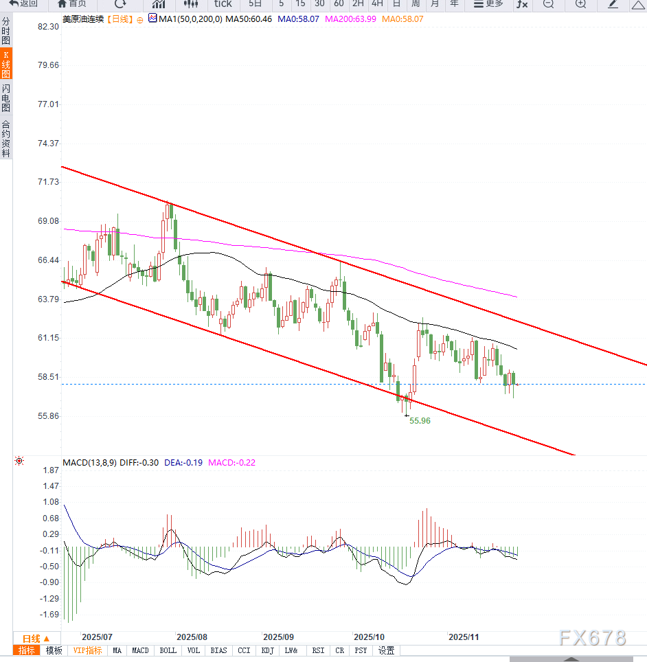 从技能面来看,美原油(WTI)日线图暴露弱势料理方式。价钱近期连续运转于50日与200日均线下方,酿成“仙游交叉”后的延续性下跌走势,注明中期趋向偏空。