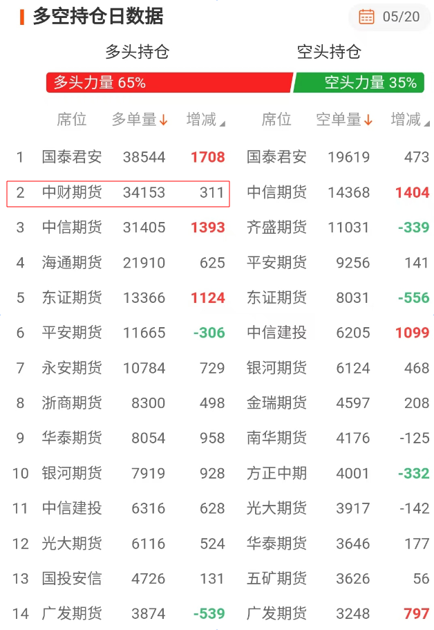 与此同时,进程这轮络续减仓之后,中财期货也遗失了占领众时的黄金众头持仓头把交椅。截至5月20日,黄金期货众单持仓排名第一的是邦泰君安期货,中财期货位居第二。