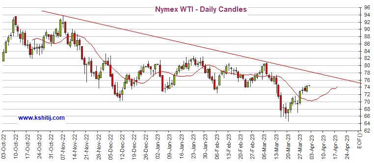 WTI原油期货停留正在75美元/桶以下。WTI油价前景看涨,希望冲破75美元/桶,并升向78美元/桶。