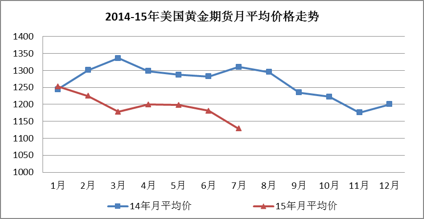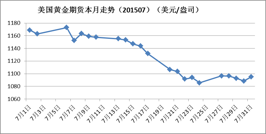 7月正在美元升值、美股上扬、以及美邦或者将正在岁终前升息的情状下,避险须要大大消浸,金价创下逾两年来最大单月跌幅。而因升息预期未变,且美邦经济逐步向好,估计金价下月将正在1100美元上下颤动。
