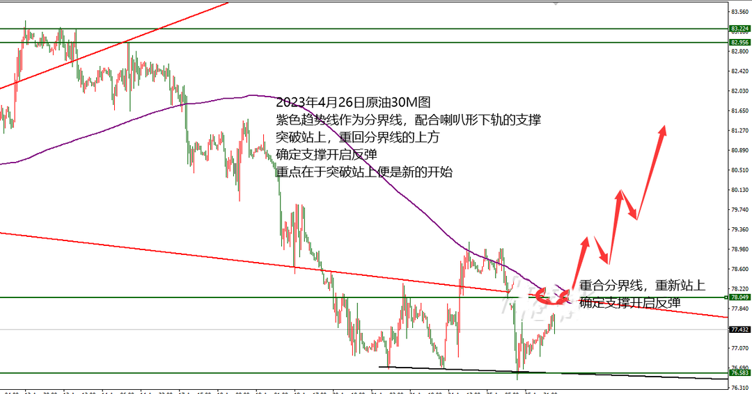 因而采取看史乘重演的思绪来周旋原油,眷注的是重回喇叭形区间的行动,并同时站上紫色趋向线的上方,从而酿成加快的行情。
