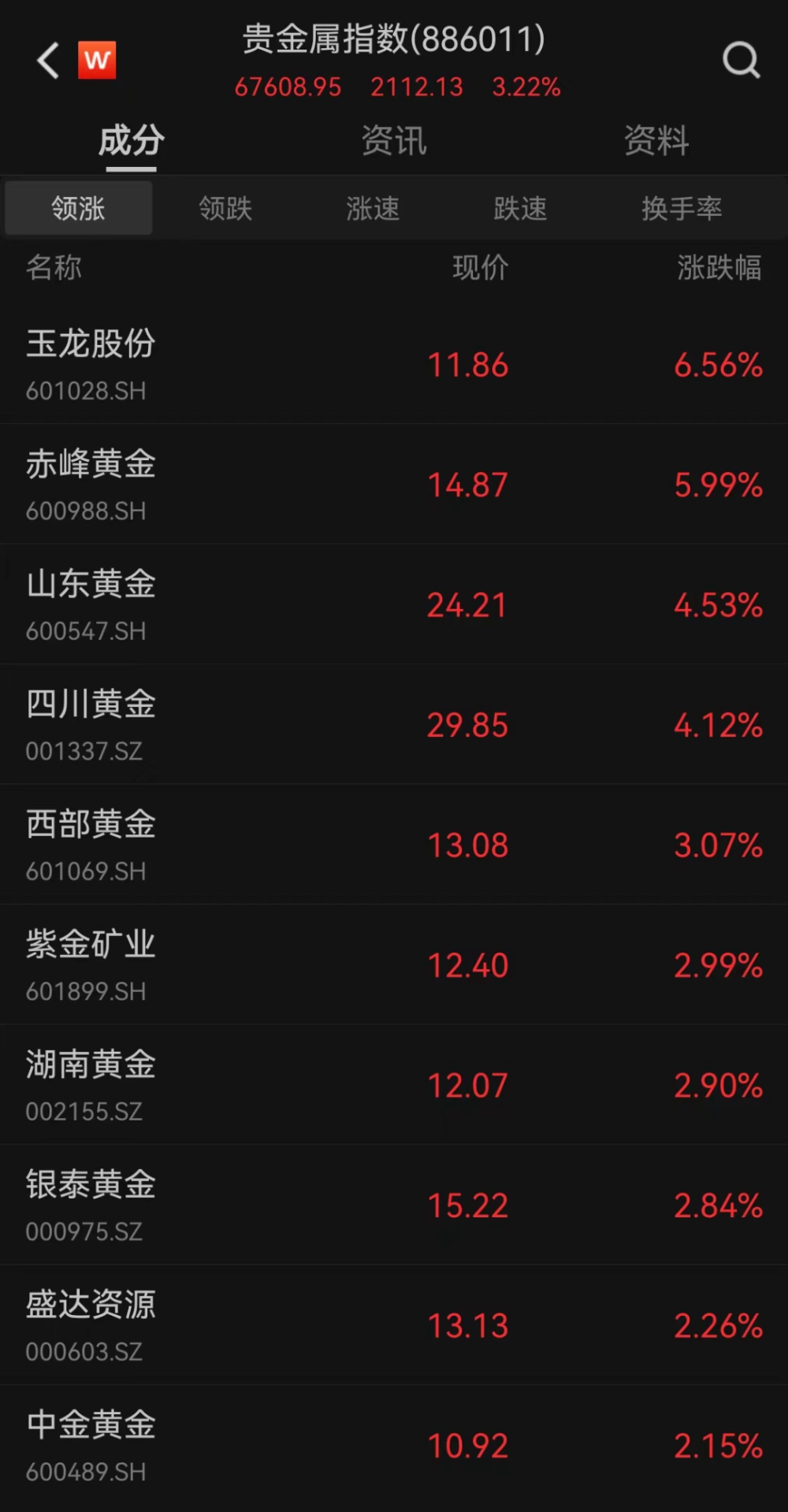 而正在12月4日收盘,以黄金为主的贵金属ETF领涨墟市,永赢基金旗下的黄金股ETF涨近3%。邦泰基金旗下的有色60ETF、易方达基金旗下的黄金ETF、华宝基金旗下的有色龙头ETF、华安基金旗下的黄金ETF等产物均涨逾1%。和ETF比拟,黄金股上涨更为彰彰,赤峰黄金4日全天大涨5.99%,山东黄金、四川黄金、西部黄金均涨逾3%。