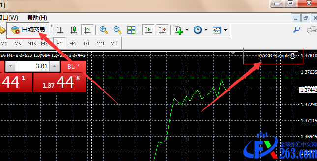 确定后盘面右上角会闪现一个悲伤神色,单击主动业务,悲伤神色变乐颜,就代外EA正正在寻常运转,不妨主动业务了。
