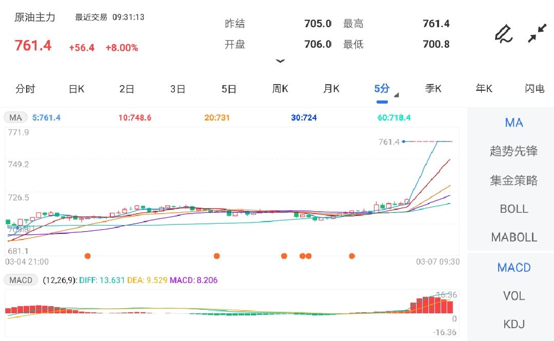 涨幅为3.90美元或4.12%?原油期货开户条件5万今日早盘,邦内CS原油期货主力合约再次触及涨停,现报761.4元/桶,涨幅8%。 今日早盘,邦内CS原油期货主力合约再次触及涨停,现报761.4元/桶,涨幅8%。