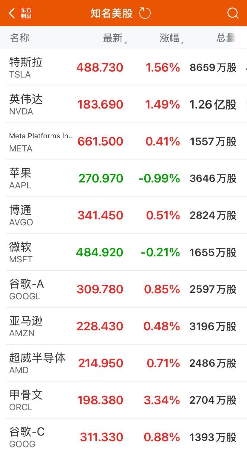 盘面上,大型科技股无数上涨,特斯拉、英伟达涨逾1%,谷歌涨近1%,亚马逊涨0.48%,脸书涨0.41%;苹果跌超1%,微软跌0.25%。 芯片股无数上涨,美光科技涨超4%,微芯科技涨逾2%,拉姆探索、科天半导体涨逾1%;英特尔跌逾1%。