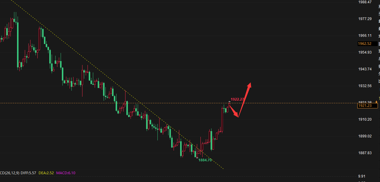 昨日黄金商场早盘开盘正在1897后行情颠簸拉升,美盘时段行情突破压力后强势拉升,日线的场所后行情清理,日线的场所后行情以一根上影线很长的大阳线收线。这种样式的收线 以及力度,根基上可能注明黄金摸底已矣。后续行情还会陆续上升!