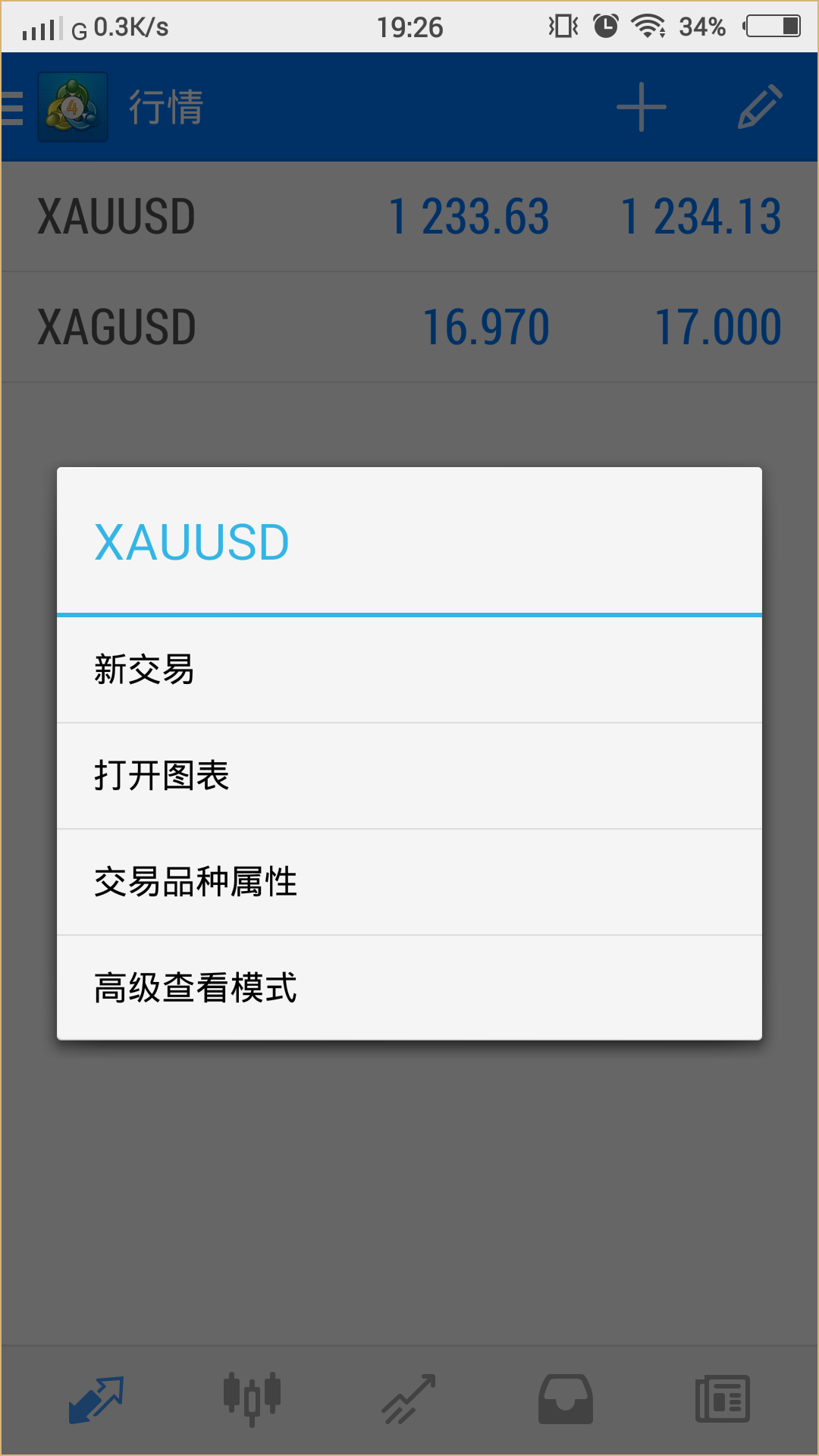 点击“行情”图标后,将显示悉数可买卖产物的“卖出”和“买入”代价。点击手机左上角,选拔“成立”,然后选中“高级形式”。正在高级形式中,报价窗口包含点差,光阴数据,最高价和最低价。