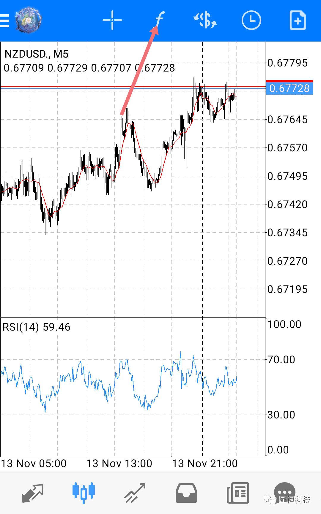 第一种,投资者正在手机MT4上掀开K线图外之后,会正在手机最上方的列外栏中看到“f”型图标,点击之后就会进入MT4本事目标选拔页面,找到己方念要增添的目标,点击之后返回,就会创造正在MT4图外窗口中依然增添了该本事目标了。