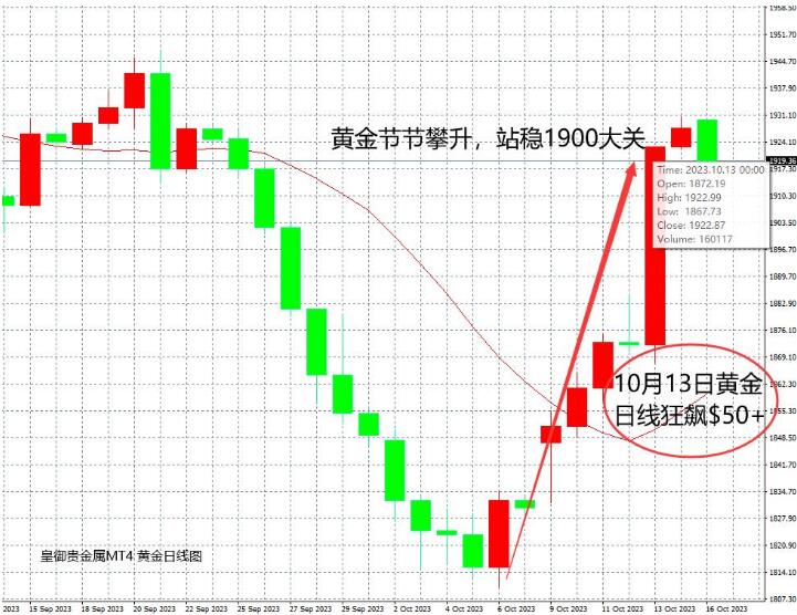 黄金墟市过山车走势激发热议。指日,黄金墟市上演大反转,金价节节攀升,避险本色闪动辉煌。皇御贵金属MT4来往体系显示,10月13日黄金一天内大涨$50+,发挥相当注意。
