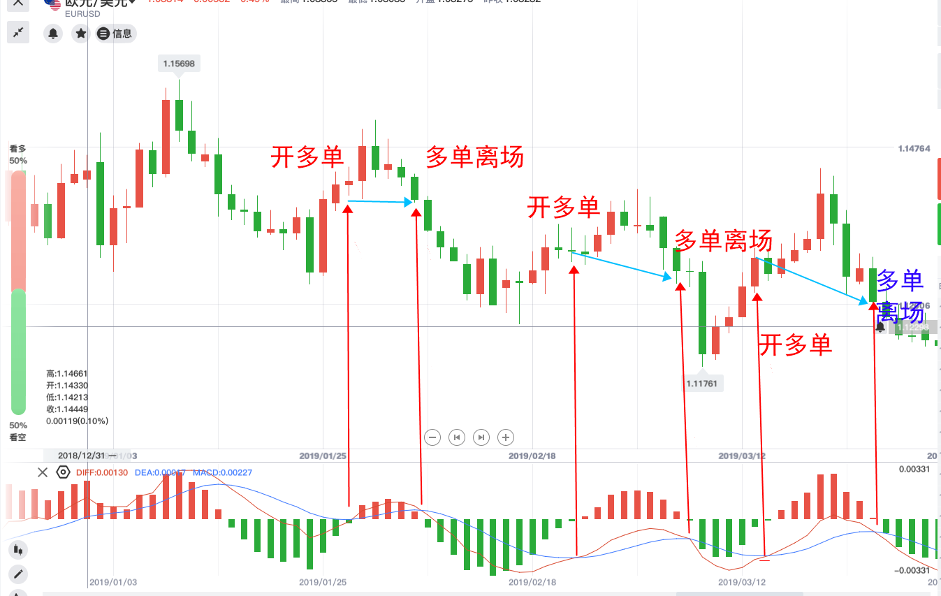 咱们假设一个万分方便的贸易战术:崭露金叉就平掉空单,开众单;崭露死叉就平众单,开空单,以欧元4小时为例复盘。