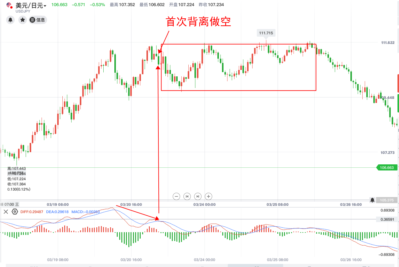 背离指代价持续改进高(新低),但目标交点/柱状图并没有追随持续改进高(新低),视为背离,意味着行情即将反转。