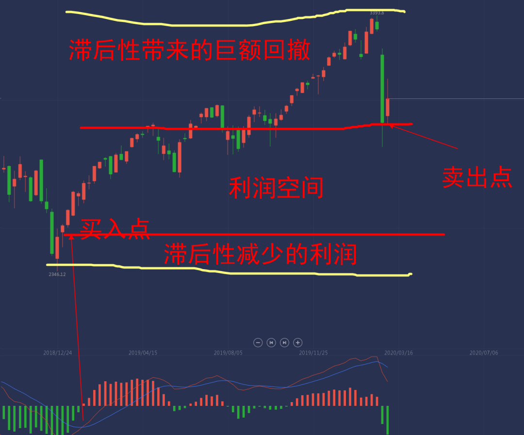 只是滞后并非坏事,一齐去趋向性目标都生活滞后性。它是通过一小段行情来推断趋向的,这一个别滞后性即是趋向战术的编造内贸易本钱。