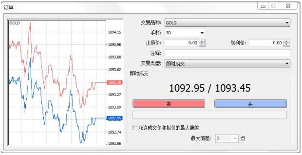 3、输入适应平台请求的筑仓手数后,正在“类型”采用“市集生意”,并根据您对产物走势倾向的预测点击“卖出”或“买入”按纽。