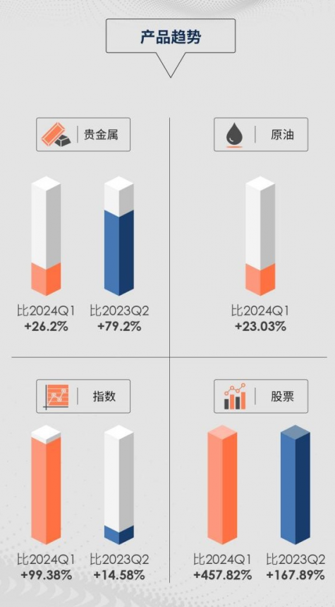 陈说显示,ATFX 2024年第二季度交往总额达7651亿美元,环比延长22.45%,同比延长43.75%。这一优异涌现不只响应了ATFX正在环球墟市中的壮健角逐力,也展现了其正在一向改变的墟市情况中延续更始和优化任事的才干。实在到细分产物类目上: