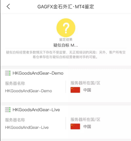 经判定,GAGFX金石外汇所用买卖软件为疑似白标,白标买卖商本钱加入较低,且供职器设立正在中邦大陆,生计很大危急。
