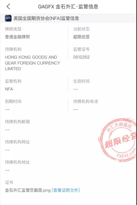 GAGFX金石外汇所持有的美邦(NFA)执照,为凡是金融执照,并没有从事外汇经纪交易的权限,属超鸿沟策划。