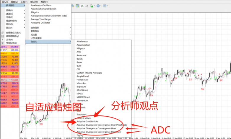 安设好之后,可能正在英邦EBC Group平台 MT4中的自界说目标中找到这三个目标,个中ADC目标包罗了三个子项。