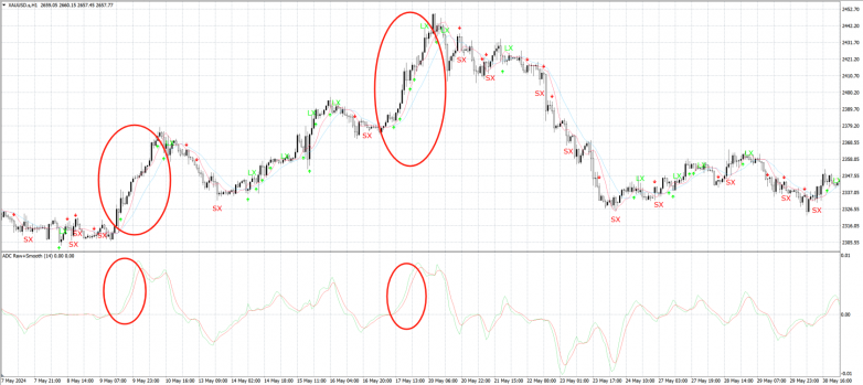 因为是独创算法,这套目标的团体打算思道也和通常目标生活不同,例如ADC Lines,首要对信号线举行了光滑惩罚,下降锯齿对行情的影响。