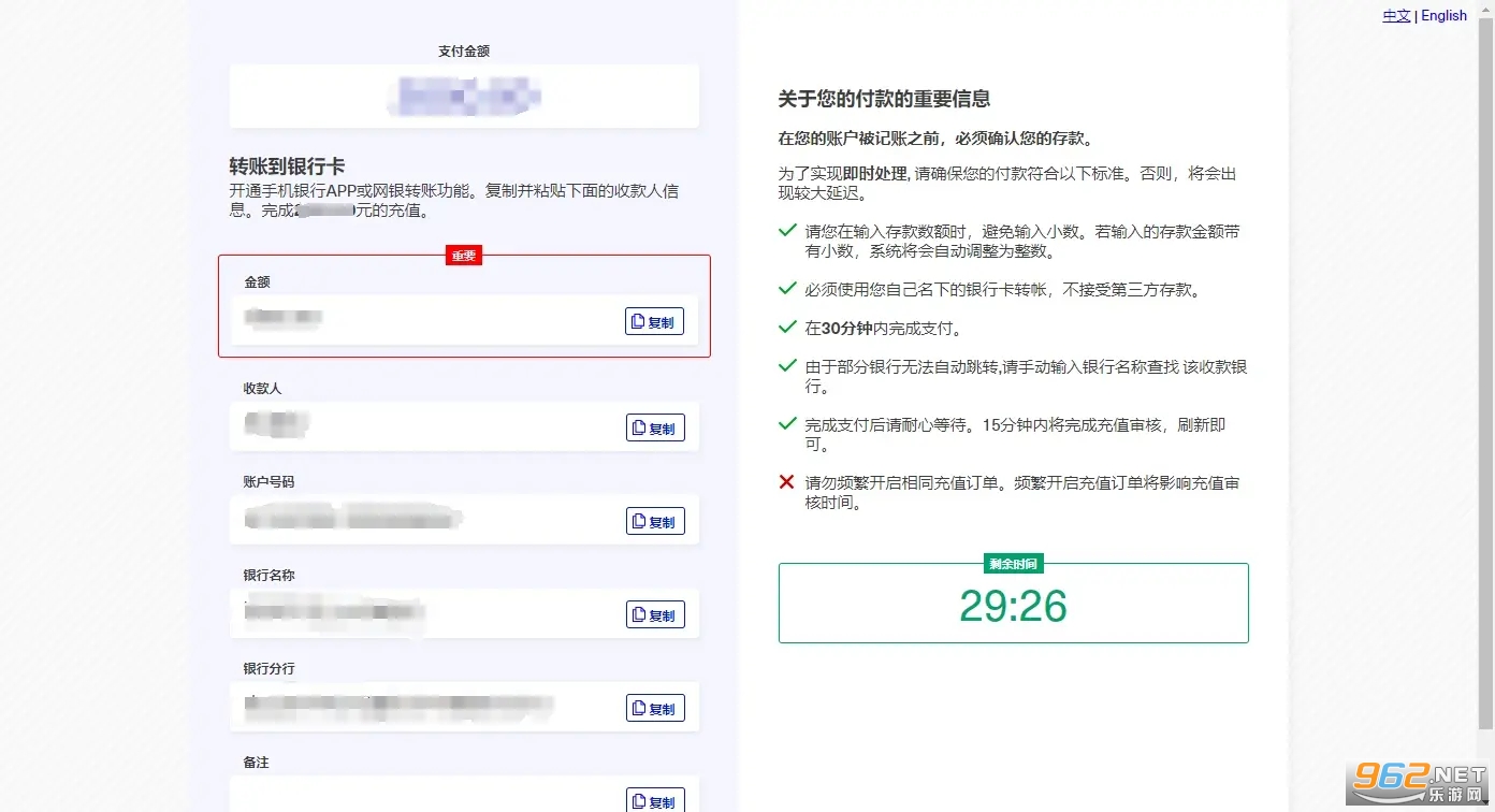实质转账金额需与此页面的金额相结婚,不然或者会导致到账延迟,乃至需求退款。