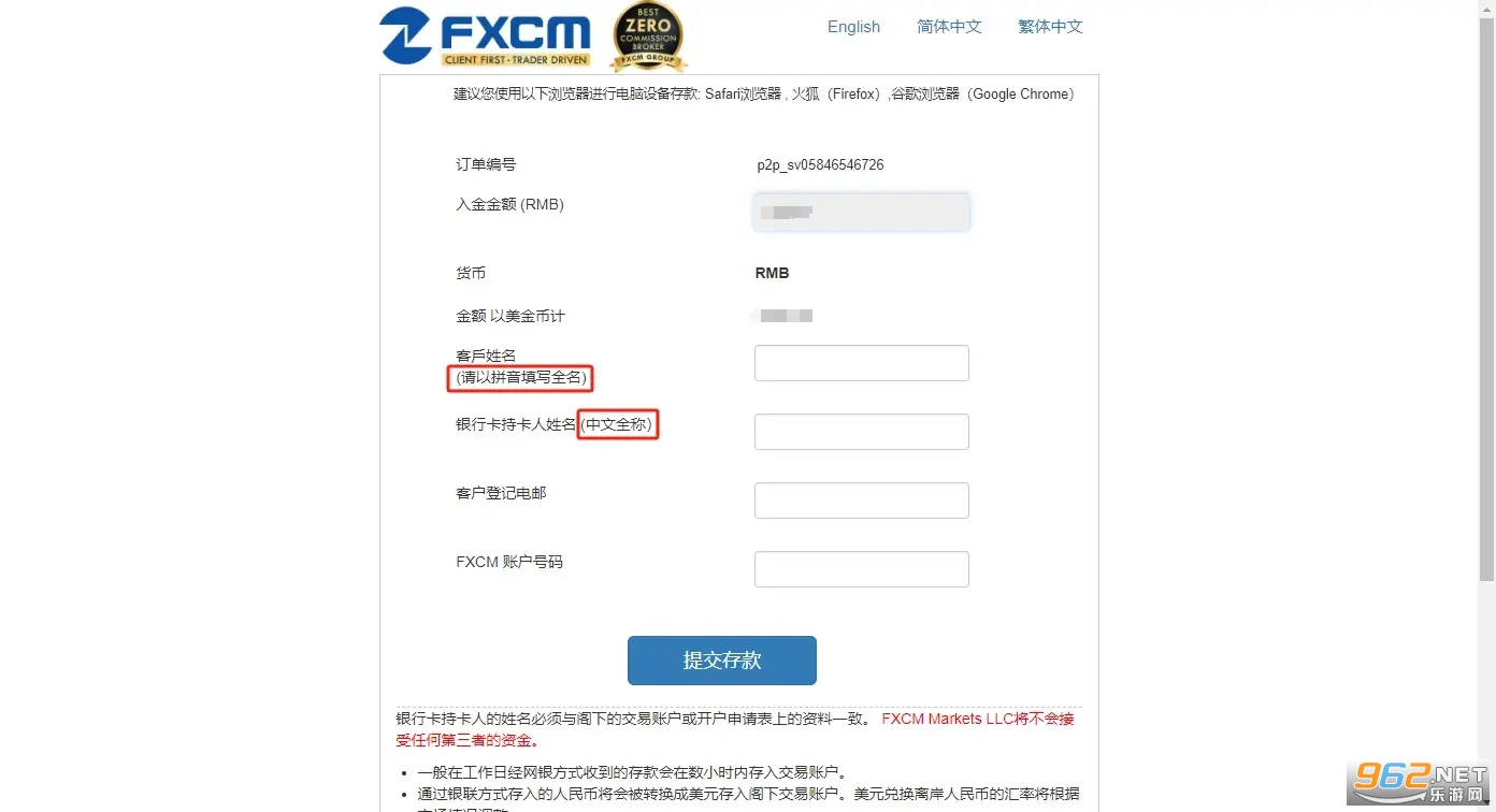 此页面供应的网银通道账户会不按期更改,请勿反复操纵前次入金的网银通道账户。每次入金需求以暂时MYFXCM显示的网银通道账户为准。如转账至过时网银通道账户,则需求进步7个就业日查找并退还资金。