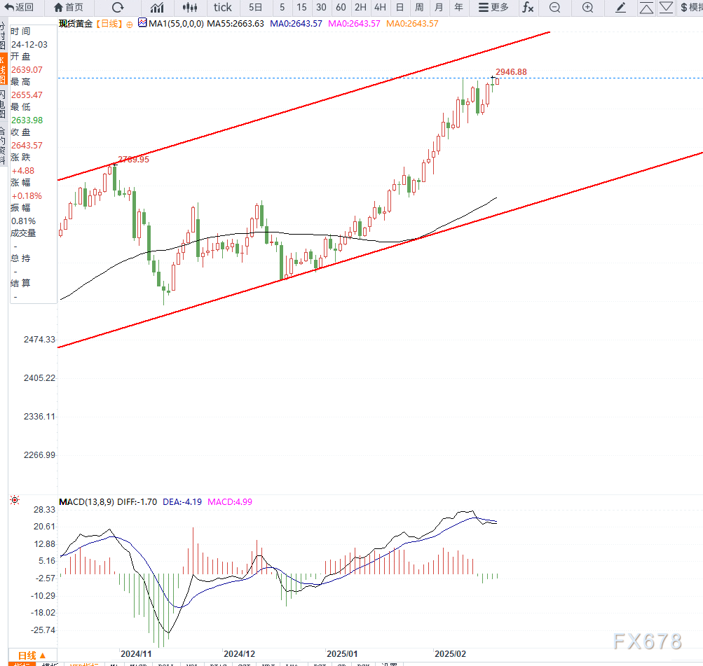 500)this.width=500 align=center hspace=10 vspace=10 rel=nofollow/图形上来看,日线级别均线偏离值进一步扩充,但史书新高之后造成新的上涨中枢,独一须要小心的是MACD目标高位是否存正在背离的也许性,从而导致金价调理。
