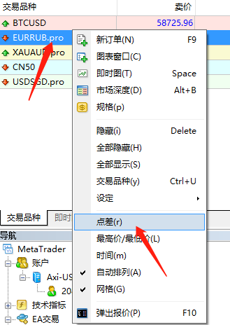 第二步:马虎抉择市集报价中的一个种类,单击一下就呈现一个列外,抉择点差即可。
