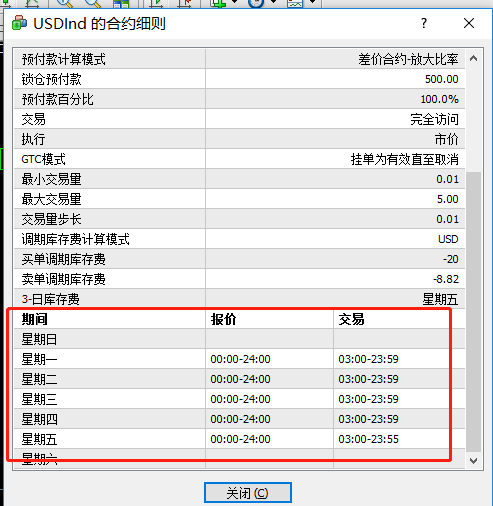 第二步:体系会展现一个页面,行家往下翻,可能看到美元指数的营业时光,看完点击闭塞即可。