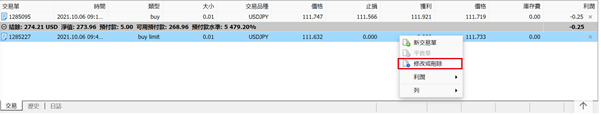 正在生意栏内,选拔要删除的订单,直接点击最右侧「×」,就可能火速删除挂单。
