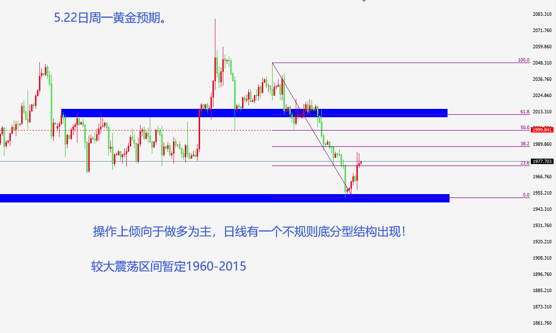 黄金上周从最高点的2022邻近一块惊动下跌到最低区域1951邻近,个中1951 1950邻近是3月份黄金跳空高开的起涨点1871到最高点2080这段行情的618地位,简直分绝不差。从上周五收线来看,反抽的力度较强。外明并不是弱势空头行情。前面的区间行情是2000-2020/22 跌破2000后 产生下跌 遵守2020到1951这段行情来看,目前一经反抽挨近0.5区域。这一点外明也不是弱势行情。