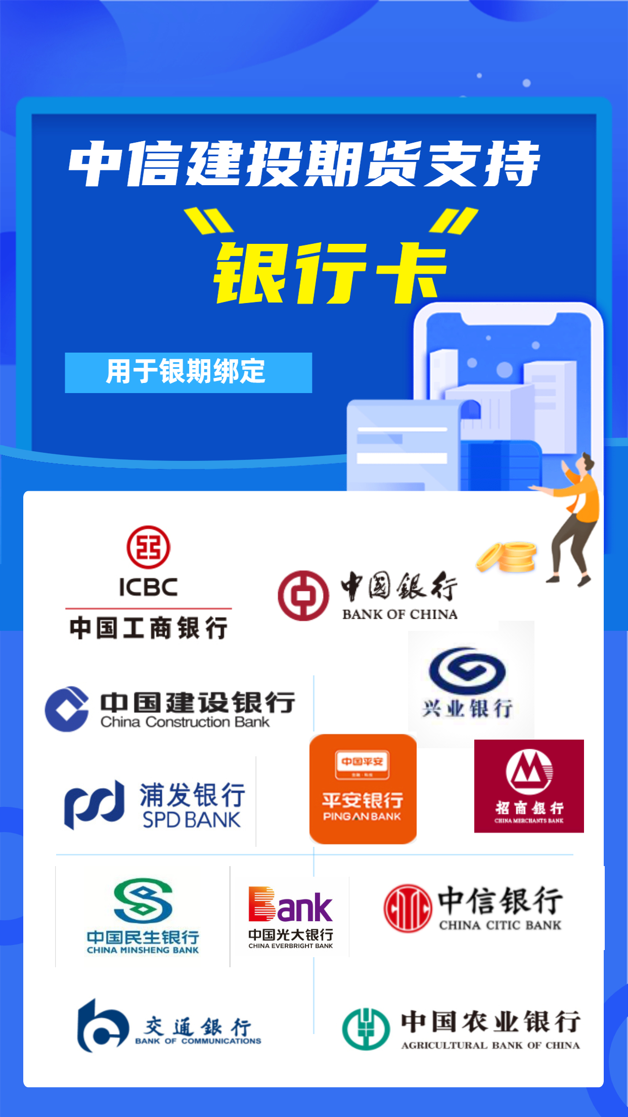 中信建投期货银行卡支持银行列表如下:原油期货开市可能通过拨打下方电话号码或增加微信合系客户司理,客户司理对您举行一对一辅导开户:
