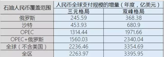 假设环球石油出口邦(除美海外)一般继承石油群众币,则正在“三元形式”和“双峰形式”下,群众币环球支出的年度范畴估计辨别增众2236.5亿美元和3354.7亿美元。