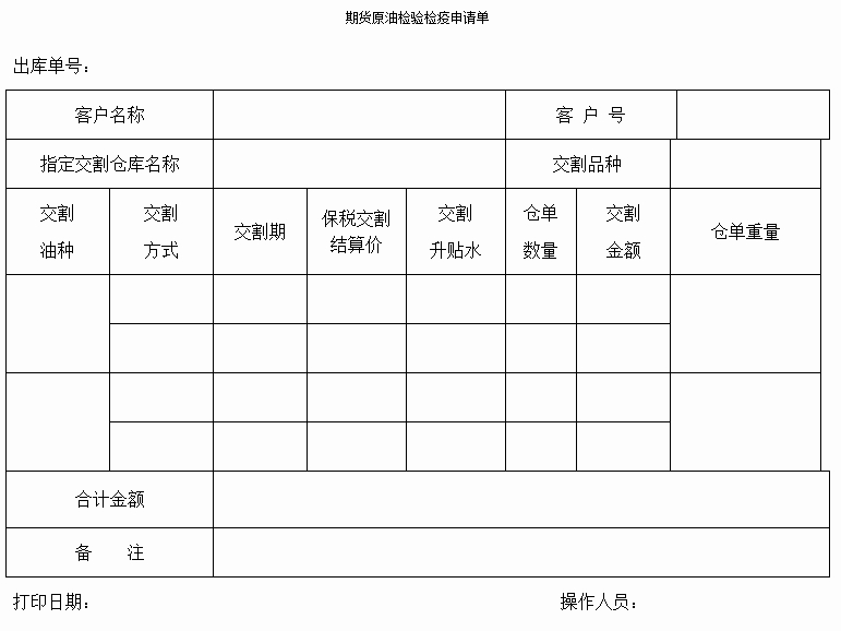 2. 本单亦可用于入库前向原油期货指定磨练机构委托磨练,由会员、境外非常插足者或境外中介机构打印后传真给选定的指定磨练机构。