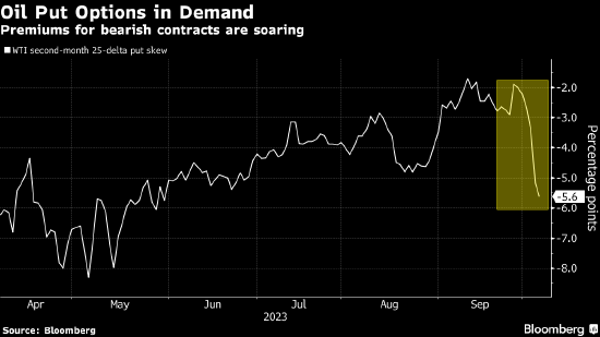 先前为油价希望冲破100美元/桶举办布仓的业务员倏忽之间争相寻求维护。众头押注裁汰,少许业务员竞相对进一步的下跌举办对冲。这些作为正在期权业务量飙升中得以显露,同时看跌期权与看涨期权比拟的溢价也跃升至6月份以还的最高程度。