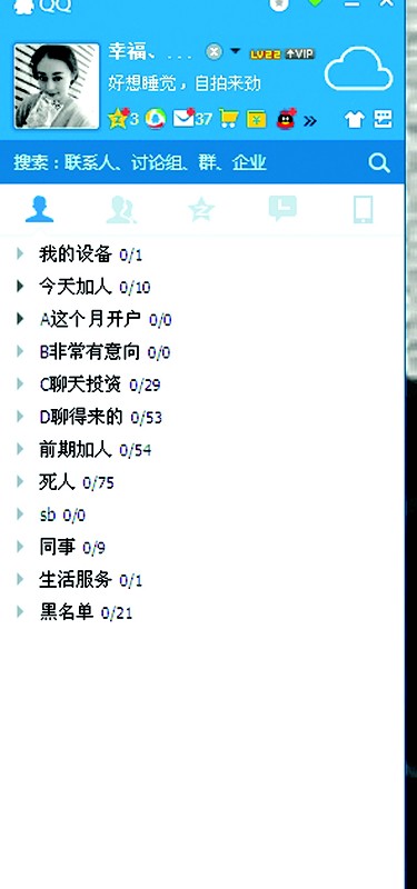 美女QQ对加的相知举行了分门别类:A指这个月开户的,B指特殊用意向的,C指闲扯扔掷的人,D指聊得来的。美女QQ的闲扯不厌其烦。一名交易员吐露,“和投资者成为挚友,以挚友的身份先容现货”,仅疏导就有6个程序,区别是首次疏导,目标是与客户修筑相信;2次疏导让客户明白你是做投资;3次疏导让客户明白你获利了;4次疏导解释即日行情大涨、神情好;5次疏导与客户互动先容现货;6次疏导是教客户开户入金。“加人、疏导、筛选、跟踪、逼单”,周密的流程解释了美女QQ就业流程的“外率性”。她们加人重要通过QQ漂流瓶、微信漂流瓶、查找及其它办法。假若2次测试发觉对方没钱、没意向的就立马删掉。记者发觉均匀每台电脑上维系2个QQ正在线,个中一个用作加人闲扯,另一个是“专业照顾”,而QQ均显示为年青貌美的女性,QQ空间相册有众张自拍美女图像。