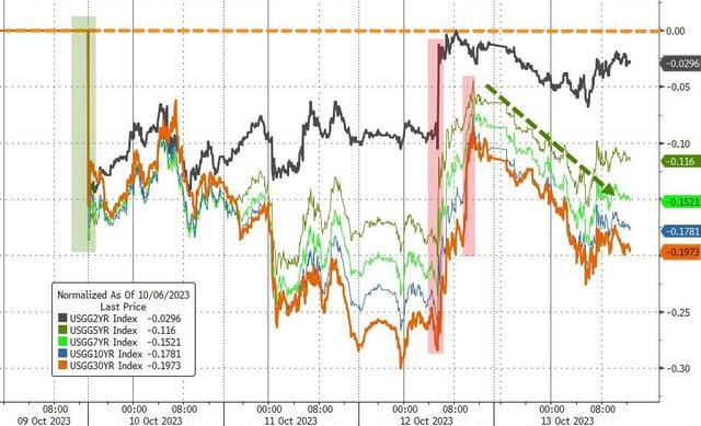 对利率前景更敏锐的2年期美债收益率正在亚市早盘升破5.06%时改革日高,美股盘前曾下测5.01%改革日低,日内降近6个基点,尚未接近周三下破4.95%而陆续两日改革的9月8日今后低位,美股早盘消费者通胀预期宣布后重上5.05%,到债市尾盘时约为5.05%,日内降近2个基点,正在连升两日后回落,本周累计降约3个基点,回吐上周反弹的众半升幅。