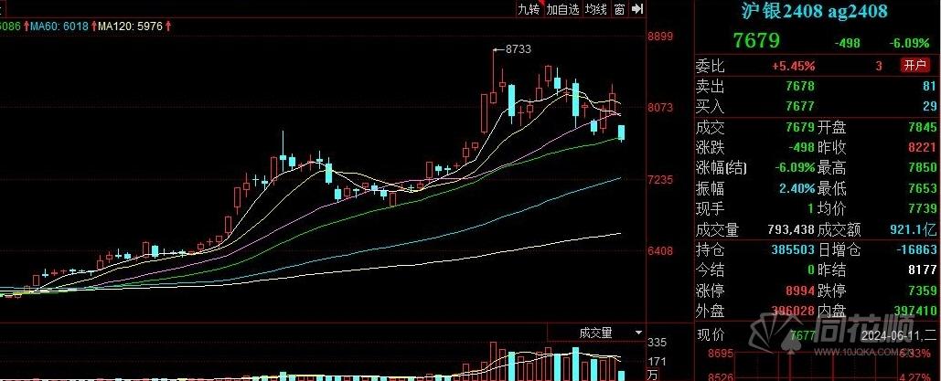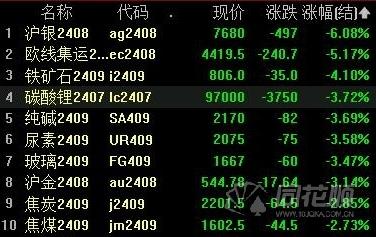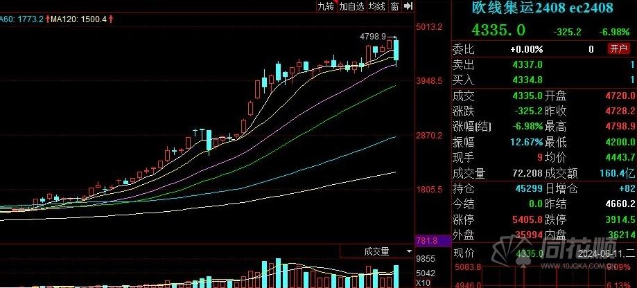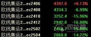 盘面上,主力合约跌超9%至4200点,远月2410、2412、2502、2504合约均短暂触碰跌停地点,目前EC总持仓删除6千手。
