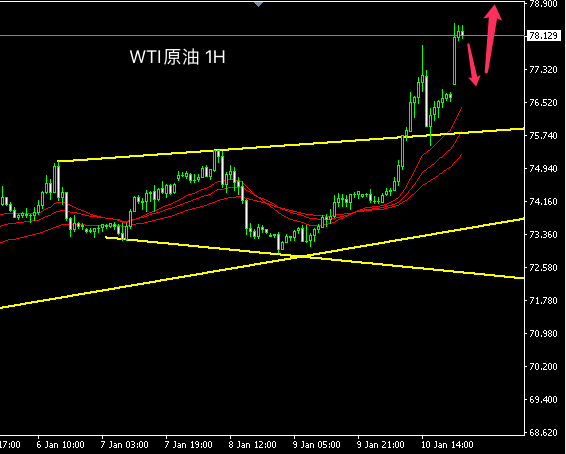 原油短线H)走势早盘发力上扬打破78价位。均线体例众头分列,短线客观趋向向上。K线实体阳线较大,众头动能阐扬充沛,估计日内原油仍存正在一波延续上涨的节拍。