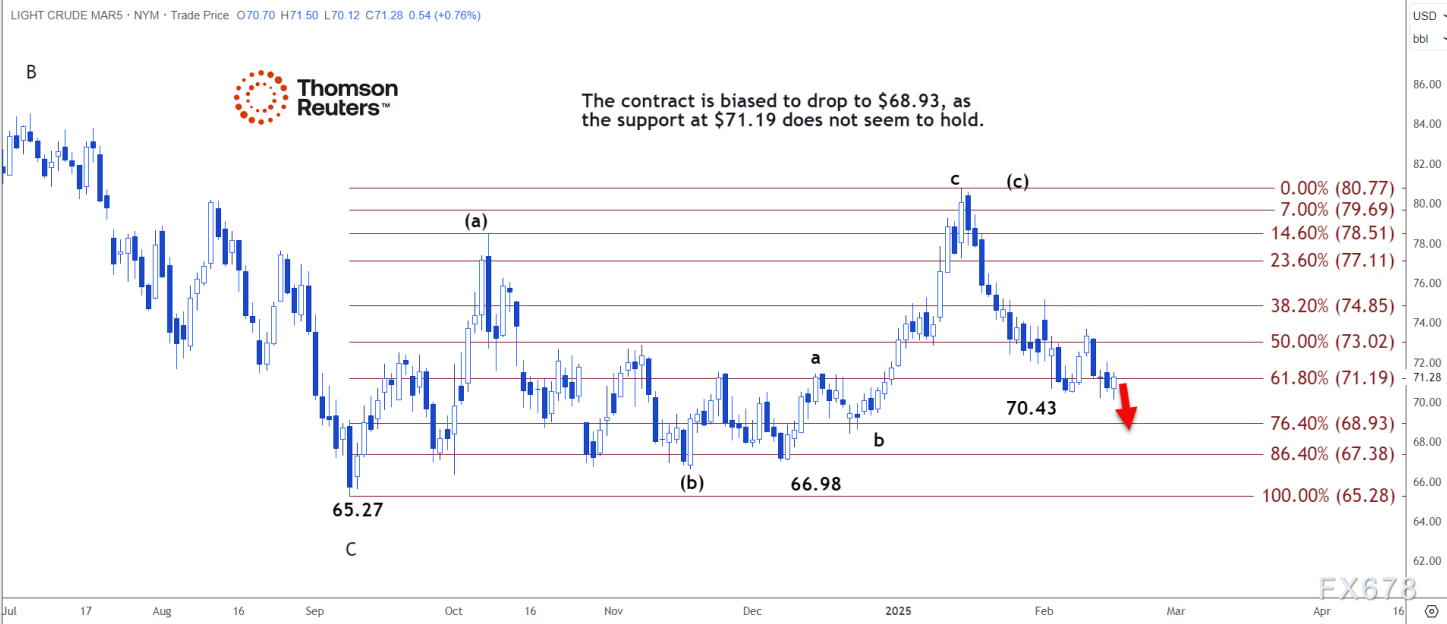 只是,该合约不妨会缠绕这一困苦进一步盘整,然后跌至 (b) 浪底部 66.98 美元。