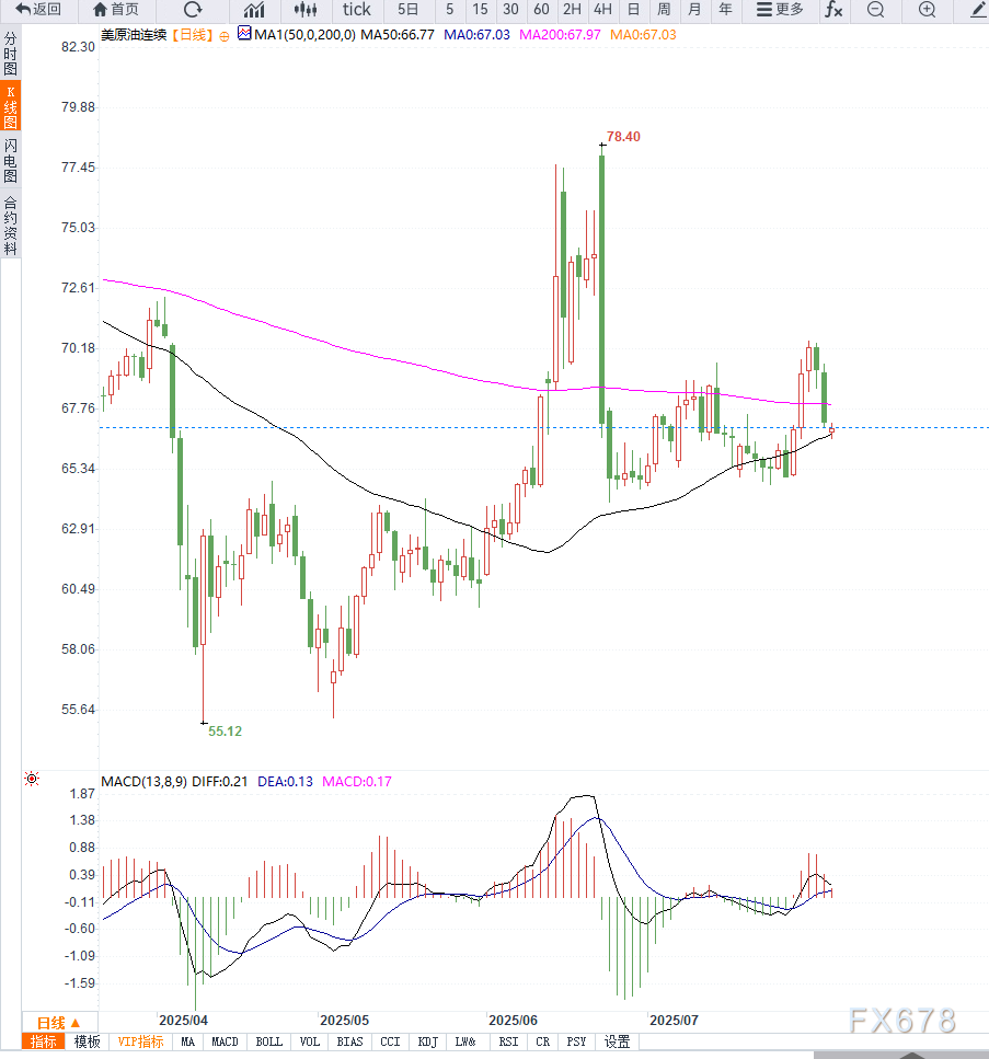 反弹方面,70美元组成主要阻力,若无法从新站稳,将限度反弹空间,庇护偏空构造。完全来看,WTI日线图技艺面偏弱,后市仍有下探危险,需亲切体贴美元走势及OPEC+后续动态。
