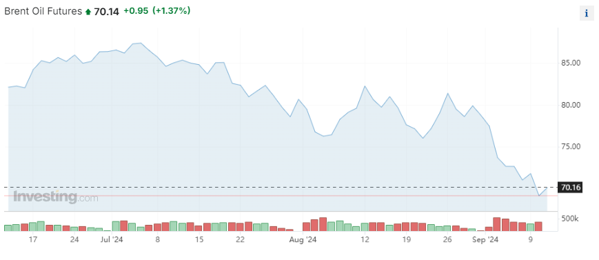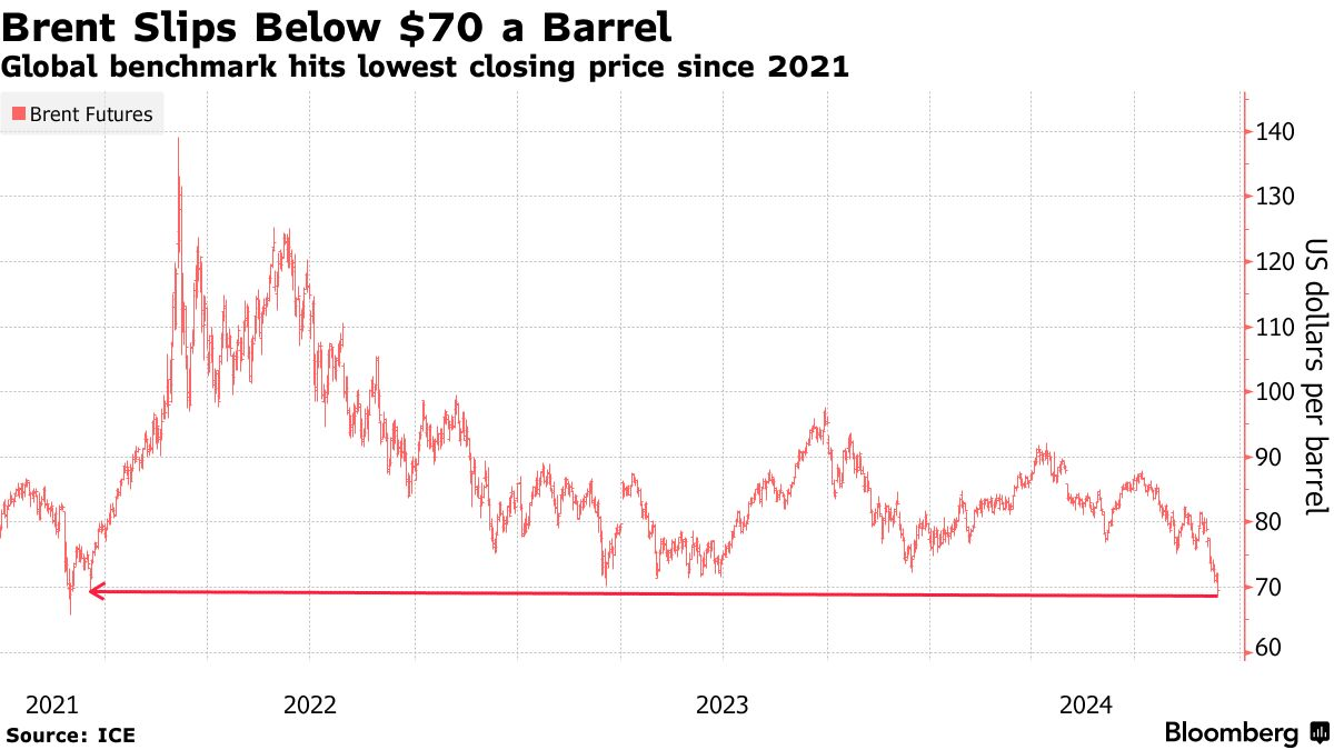 美东功夫周二(9月10日),环球基准的布油原油自2021年12月以还初度跌破70美元/桶。正在石油输出邦结构欧佩克(OPEC)两个月内第二次下调邦际原油需求预测后,商场对原油期货的掷售彰彰加快。截至发稿,布油报70.14美元/桶,美油报66.69美元/桶。