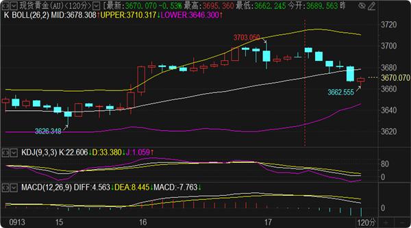 盘面来看,周三黄金价值日内3连阴下跌触及日线名望,思绪一经提前说了,欧盘铺排3664-3660周围抓低点做众一次,终归凌晨才是商场中心,高位颤动事后的回撤修复差不众到头了。身手面上1小时布林带启齿向下运转,4小时图形SAR目标完工顶底转换映现正在3703向下发散,同时4小时MADC顶背离信号映现,阶段性的顶部信号一经映现,那就延续反弹做空思绪对付就好。
