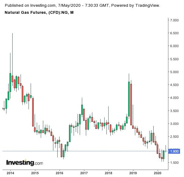 5月5日,气价更是毗连73个往还日处于2美元下方,突破了2016年毗连48个往还日亏损2美元的记载,创下过去10年最长记载。