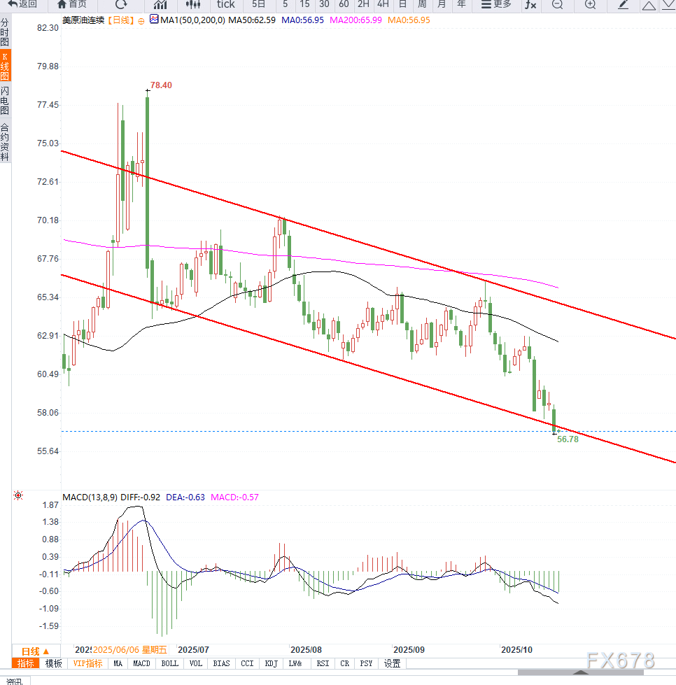 从技能面来看,美原油日线图显示,WTI价值持续众日运转正在60日均线下方,短线呈弱势清理形式。价值正在跌破57美元之后空头或将加快下行,上方压力区间聚合正在58.8至59.5美元区域。