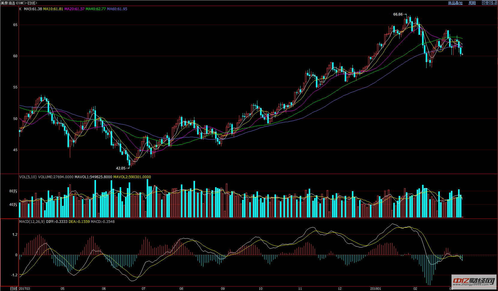 美原油主力日线.美原油:日线图上,美原油主力近期完全保护高位区间震撼走势,永远来看盘面仍处于上升行情。上个业务日美原油主力收出一根阴线,收盘价站于完全均线劈头拐头向上,永远来看商场仍有维持;成交量上看,商场近期掷盘压力较大,成交范畴小幅上升;DIFF、DEA两线轴相近死叉向下,绿色动能柱小幅扩张;归纳来看,短期美原油主力延续走跌概率较大,下方维持位58.16美元/桶相近。